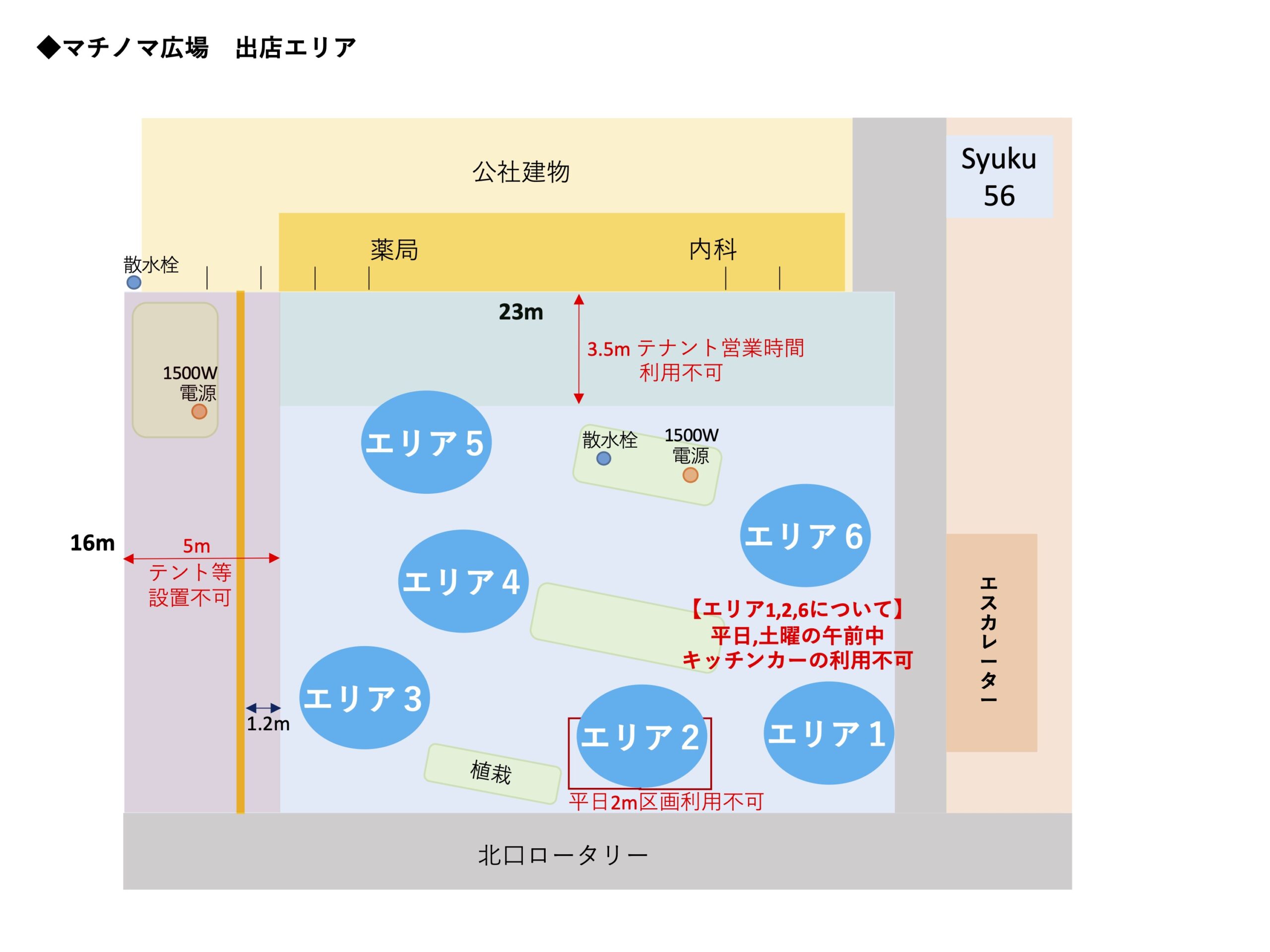 - 住宅や店舗に面していることから、歌唱や楽器演奏等を伴うイベントは原則禁止です。