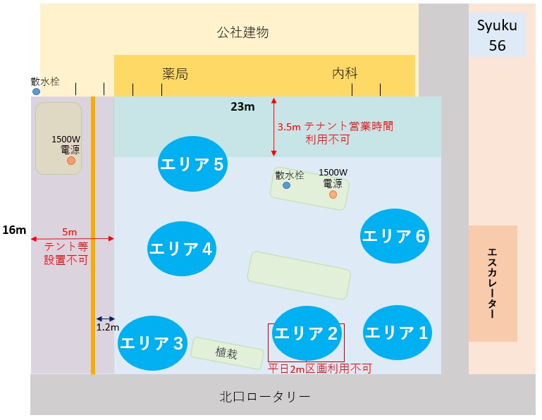 - 住宅や店舗に面していることから、歌唱や楽器演奏等を伴うイベントは原則禁止です。